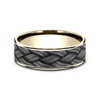 7.5mm, Comfort fit 14K Yellow Gold and Grey Tantalum Braided rope pattern, thin edges