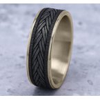 7.5mm, Comfort fit 14K Yellow Gold and Grey Tantalum Wheat weave pattern, thin edges