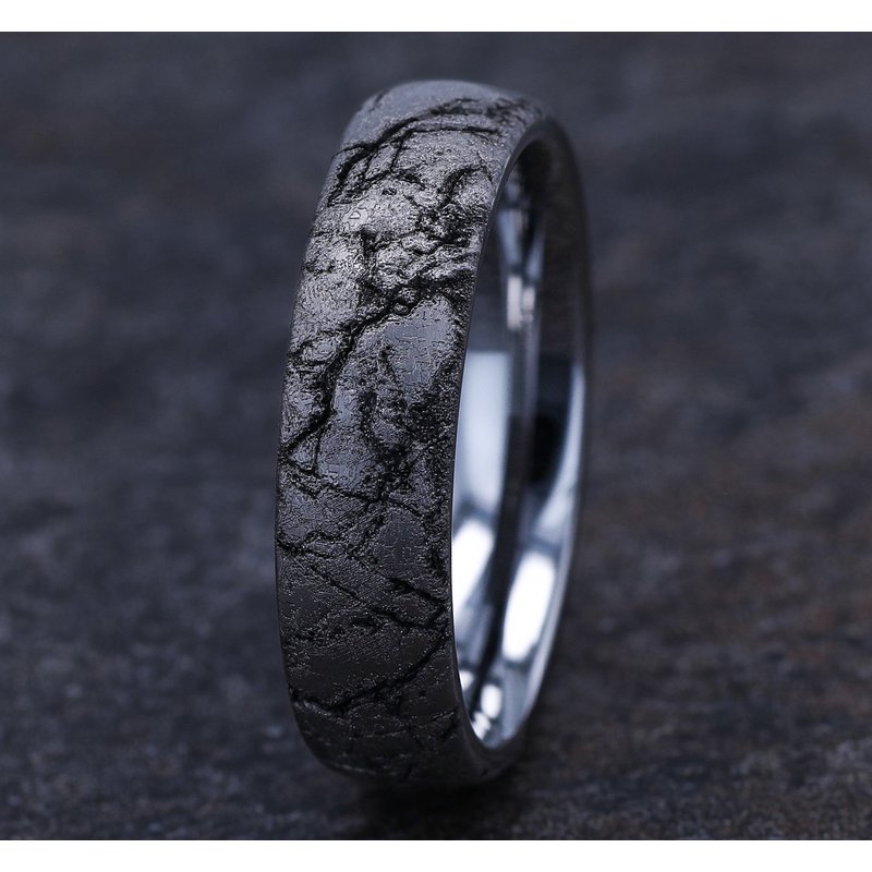 6mm, Comfort fit Tungsten Marble pattern