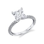 The Braylin classic pave engagement ring is a breathtaking piece, with a prong set cushion cut diamond crowning a classic micro pave shank, adding up to a total weight of 0.50 carats. Customize it to reflect your personal style by choosing your favorite metal: white gold, yellow gold, rose gold or platinum. Pair it with classic Sylvie wedding bands to create a timeless look.