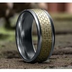 8mm, Comfort fit 14K White and Yellow Gold Brick wall patterned center, polished bevel edges