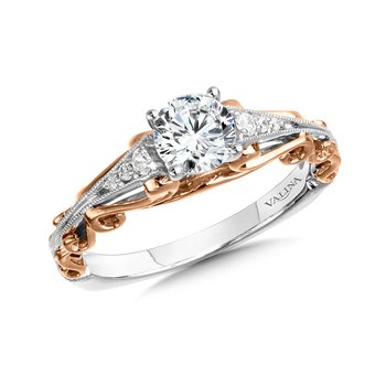Straight Diamond Engagement Ring w/ Two-Tone Cape