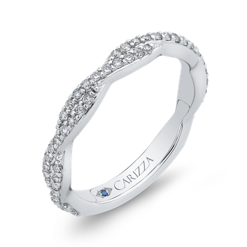 14K White Gold Round Eternity Diamond Wedding Band with Criss-Cross Crossover Shank