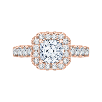 14K Rose Gold Cushion Cut Diamond Halo Engagement Ring (Semi-Mount)