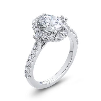 14K White Gold Oval Cut Diamond Halo Engagement Ring (Semi-Mount)