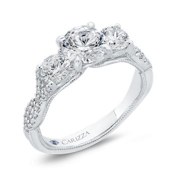 14K White Gold Three-Stone Engagement Ring with Round Diamond (Semi-Mount)