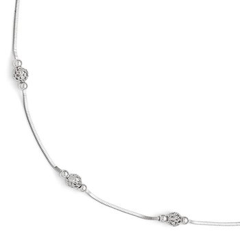 Sterling Silver Rhodium D/C Beaded w/1in ext. Anklet