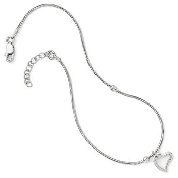 Sterling Silver Polished Heart w/1in ext. Anklet